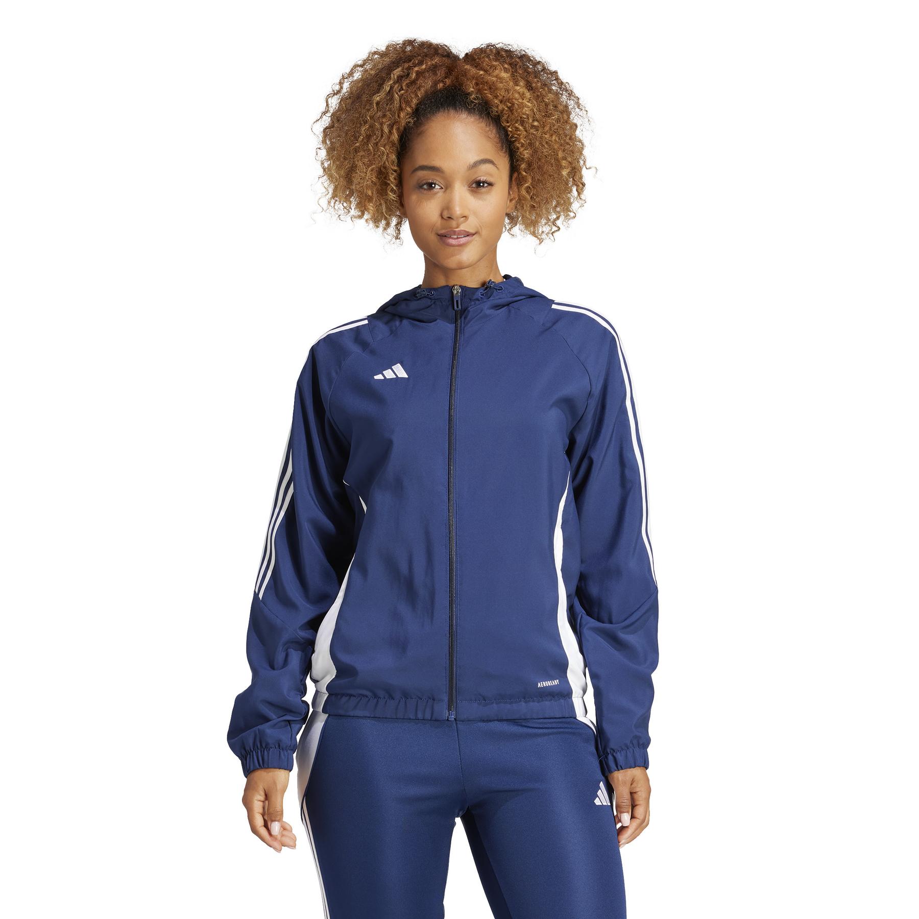 Don't let the elements disrupt your training. This adidas Tiro 24 windbreaker is designed for intensive soccer matches on windy days. Lined in soft mesh, it's made from hard-wearing canvas for added comfort. AEROREADY technology wicks away perspiration to keep you dry during effort.